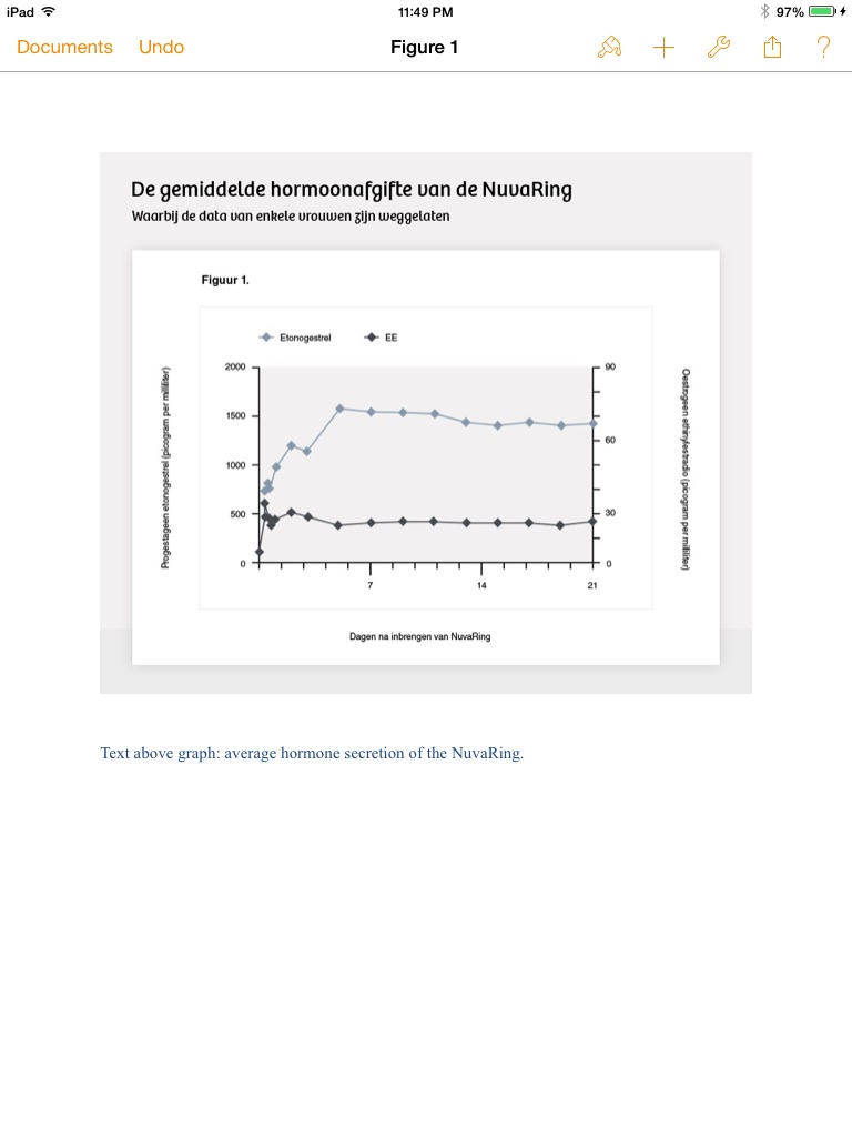 From the graphs and tables of this study, some of which also found their way onto the label, and in the publicized evaluation report of the ‘Dutch college for the evaluation of drugs’ [CBG], it shows that the average secretion of both hormones is stable. [lit.‘average release from both hormones with users stable happening’]. Good news for Organon.
